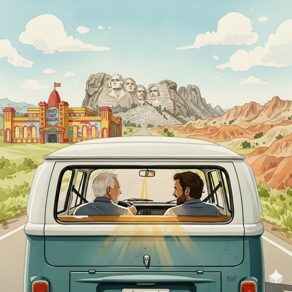 Join our overly confident history duo as they road‑trip through some of the state’s most iconic and occasionally corn-covered destinations. From the crunchy grandeur of the Corn Palace to the rugged beauty of the Badlands, from the presidential stone stares of Mount Rushmore to the powerful, still-evolving tribute of the Crazy Horse Memorial, Fred and Rodney stumble, bicker, and marvel their way across the Black Hills. Along the way, they encounter unpredictable weather, reverent gift shops, and more plaques than Rodney can emotionally process. A misguided adventure awaits!